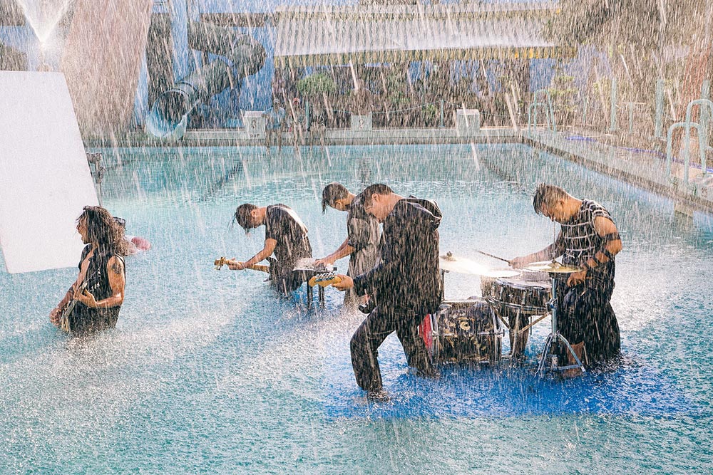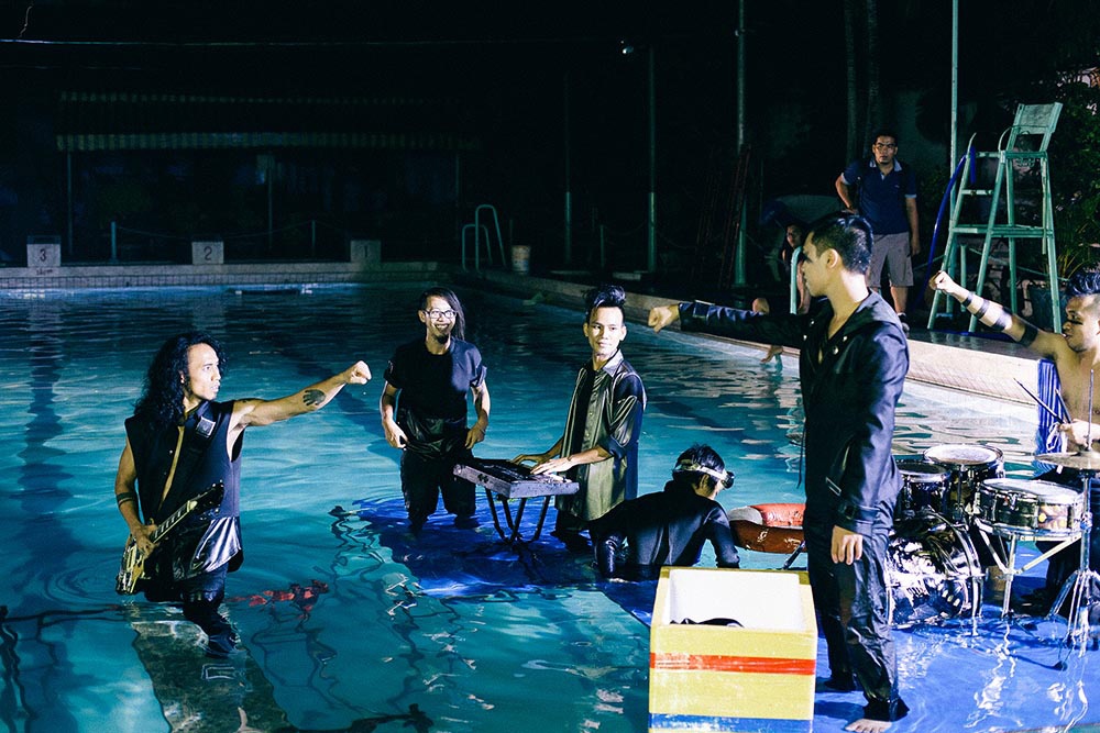 | Trong cảnh hậu trường MV, rocker bị xích dưới hồ nước với con trăn khổng lồ. Nam ca sĩ mạo hiểm để có cảnh quay sống động. |