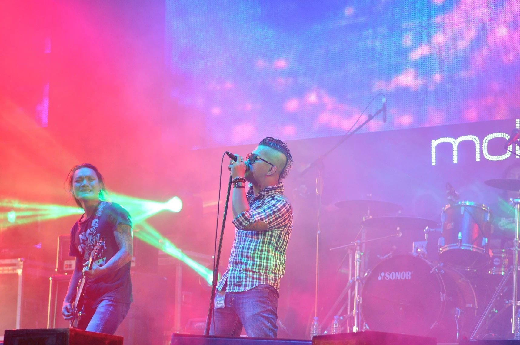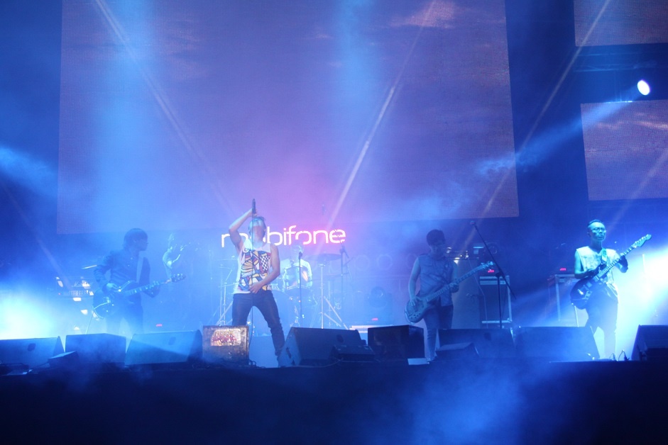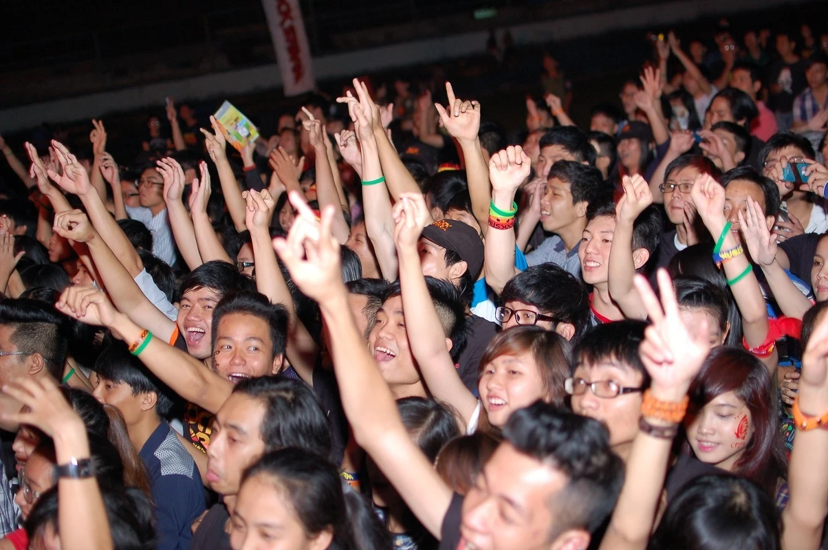 | Ngũ Cung là đại diện miền Bắc hiếm hoi trong đêm nhạc tổ chức ở thành phố chỉ cách Sài Gòn tấp nập chừng 30km. Không có lợi thế sân nhà nhưng họ vẫn dễ dàng “đốt lửa” trên sân khấu cùng sự cuồng nhiệt của hàng ngàn khán giả. |