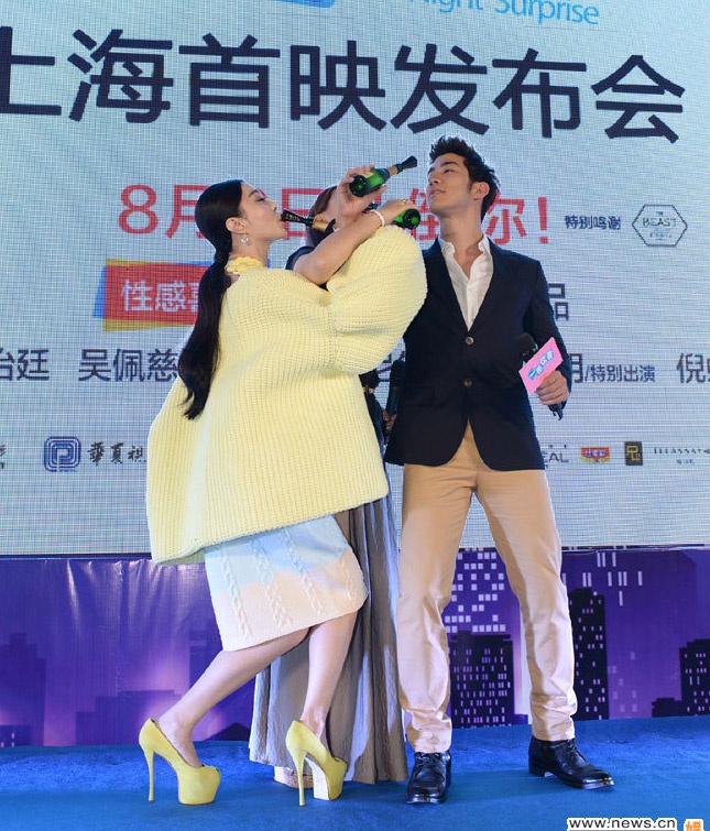 Hôm qua, 7/8, đoàn làm phim Đêm vui bất ngờ (A Night Surprise) với 2 ngôi sao là Lý Trị Đình và Phạm Băng Băng đã có buổi họp báo ra mắt tại Thượng Hải.