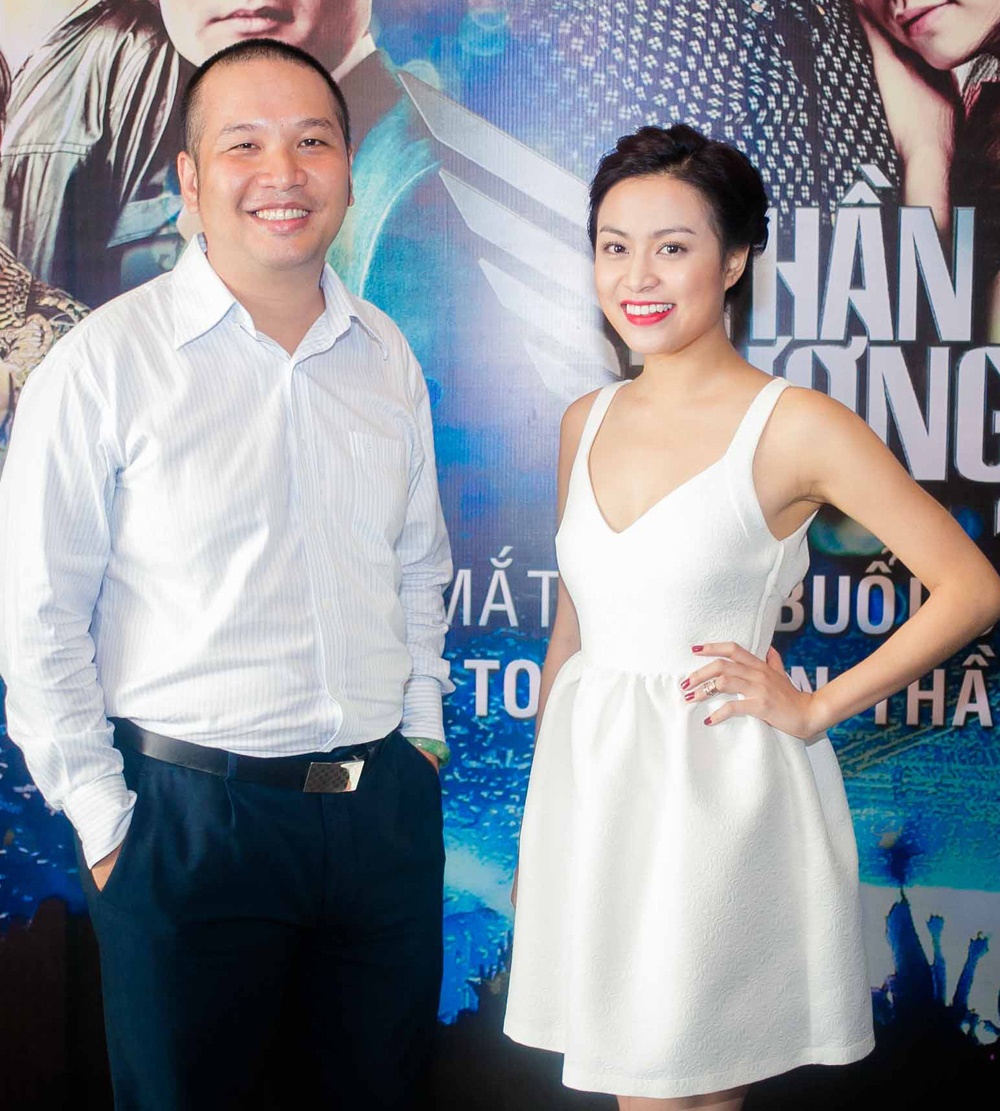 Vợ chồng Phạm Quỳnh Anh - Quang Huy trước giờ họp báo. Chiều qua 25/11, cặp đôi tổ chức buổi họp báo ra mắt MV Buổi chiều hôm ấy - nhạc chính của bộ phim Thần tượng chuẩn bị ra mắt vào tháng 12. Ca khúc Buổi chiều hôm ấy được đạo diễn Quang Huy tin tưởng nhạc sĩ Thái Thịnh viết lời và Đằng Phương phối khí. Anh cũng ưu ái, gửi gắm ca khúc này vào giọng ca của bà xã, sau khi cắt vai điện ảnh đầu tiên của cô trong phim.