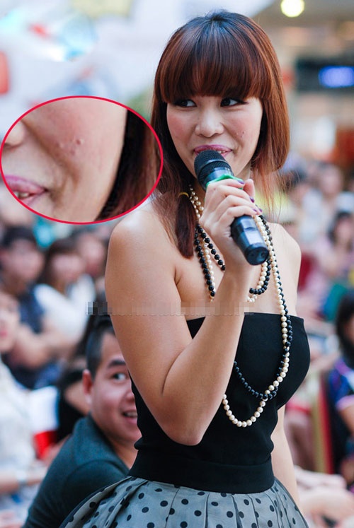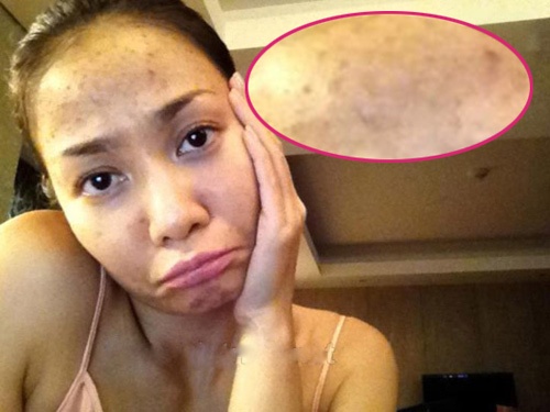 | Làn da tuyệt đẹp của Ngô Thanh Vân cũng có lúc bị mụn li ti. |