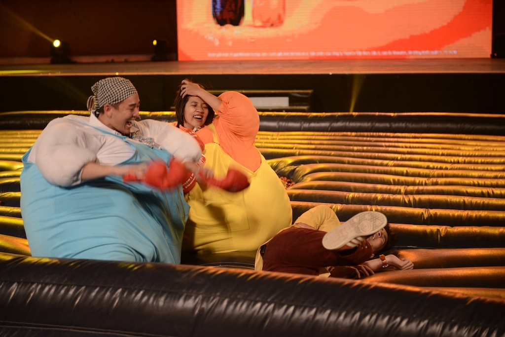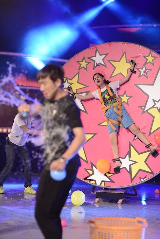 | Hai đối thủ của Hứa Vĩ Văn và Minh Khuê cũng không dễ chịu hơn là bao. Dù đã chuẩn bị trước tinh thần song gái một con Phạm Quỳnh Anh vẫn mếu máo khi bị xoay tròn và liên tục bị tấn công bằng bóng nước trong một thử thách. |