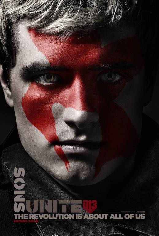 Ở Mockingjay - Part I, Peeta (Josh Hutcherson) bị chính phủ biến thành quân bài chính trị, đồng thời được tiêm thuốc để thực hiện nhiệm vụ ám sát Katniss Everdeen nhưng bất thành. Nữ nhi không thể cầm lòng khi chứng kiến cảnh người bạn thân phải trải qua nhiều đau đớn. Poster của nhân vật Peeta mang dòng chữ “Unite Sons” (Hợp nhất những người con). |