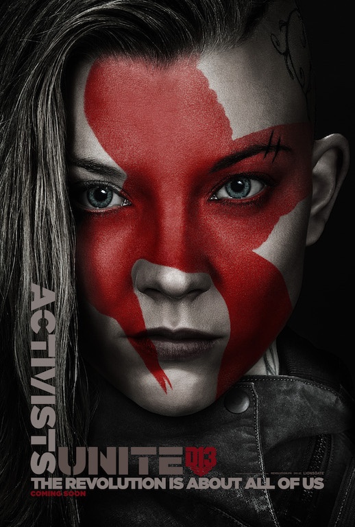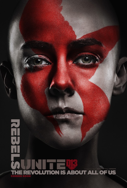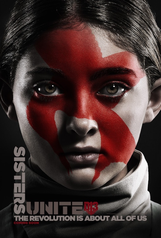 Cô em 13 tuổi của Katniss Everdeen, Primrose (Willow Shields), không trực tiếp xuất hiện trên chiến trường cùng chị. Thay vào đó, em tham gia công tác hậu cần, chữa trị những người bị thương trong các cuộc giao tranh. Một trong những biệt tài của Prim là bào chế ra các phương thuốc hữu hiệu từ thảo mộc. Poster của Primrose Everdeen mang dòng tagline “Unite Sisters” (Hợp nhất những người chị em). |