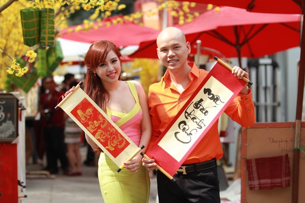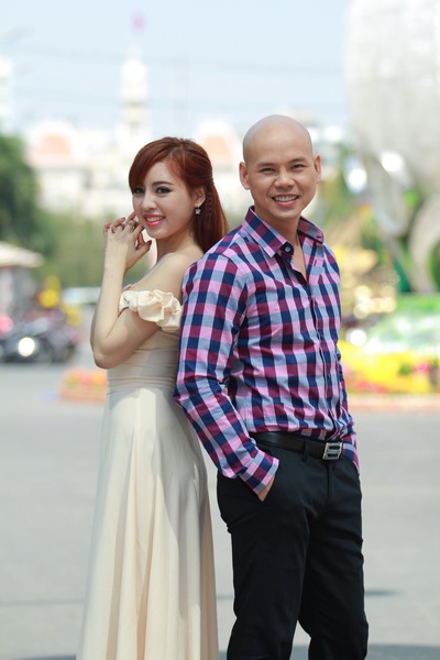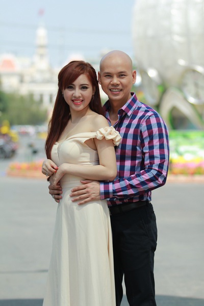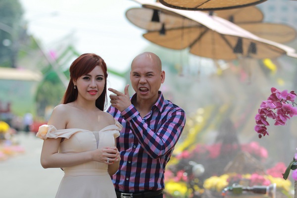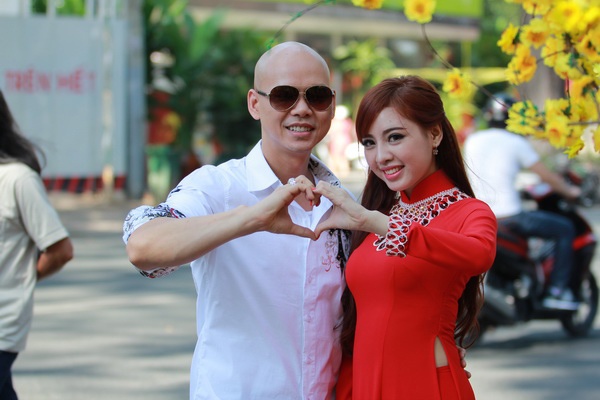 | Nam ca sĩ không rủ vợ Thái Bích Ngọc đóng bạn diễn mà mời hot girl tham gia. |