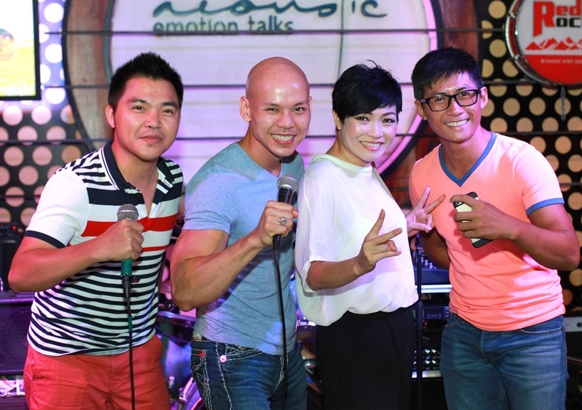| Để chuẩn bị cho liveshow Dấu ấn sẽ diễn ra ngày 4/10 tại NTĐ Nguyễn Du, nam ca sĩ Phan Đinh Tùng và các khách mời Phương Thanh, Cát Phượng, Thái Ngọc Bích, nhóm MTV, Bel Canto… vừa có buổi tập dợt tại phòng trà Acoustic. |