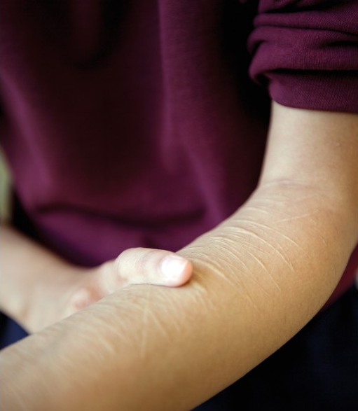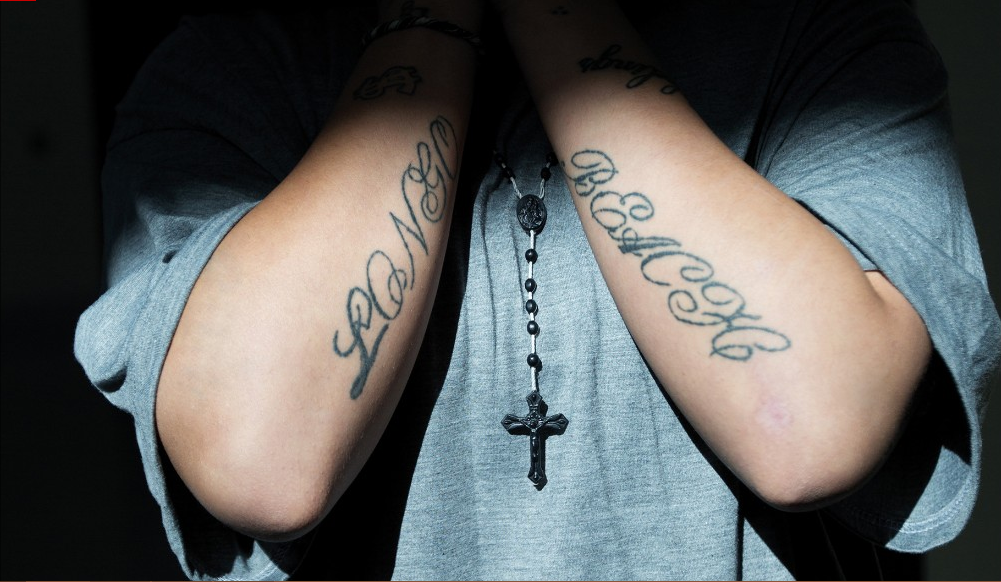 | Vô số vết sẹo trên tay B.E., 17 tuổi. Chúng là kết quả của hành vi bạo hành tình dục. "Cha thường xuyên cưỡng hiếp tôi và chị gái", cô tiết lộ. |