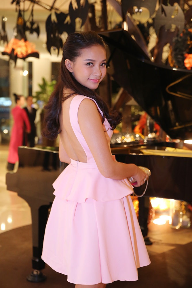 | Để thu hút sự chú ý của mọi người xung quanh, chân dài chọn cho mình chiếc váy hồng pastel được thiết kế tinh tế. Đường cắt cúp độc đáo trên trang phục đã giúp Phan Như Thảo khéo léo khoe lưng trần gợi cảm trước ống kính. |