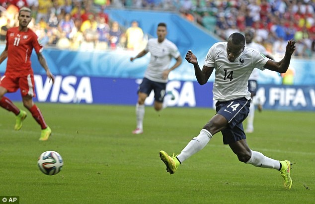 | Matuidi kết thúc hoàn hảo đường chuyền của Benzema. Tuyển Pháp lần thứ 2 làm tung lưới Thụy Sỹ trong vòng 1 phút. |