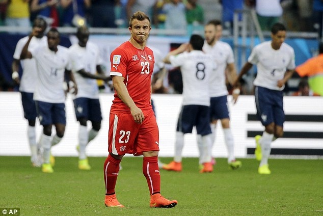 | Xherdan Shaqiri thất vọng khi chứng kiến cảnh đội nhà thua chóng vánh trước Pháp. |