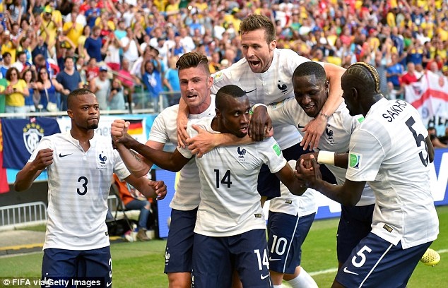 | Moussa Sissoko nâng tỷ số lên 5-0 cho tuyển Pháp. Đây là bàn thắng thứ 104 của Les Bleus tại World Cup. |