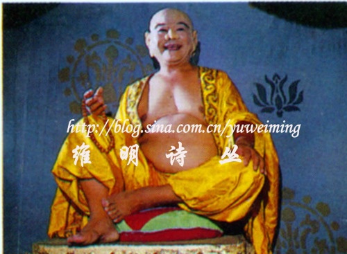 | Nghệ sĩ Thiết Ngưu hỉ hả trong tạo hình vai diễn Di Lặc phật tổ. |