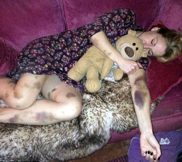 | Các vết bầm tím xuất hiện trên khắp cơ thể Thea Wilson. Ảnh: Daily Mail. |