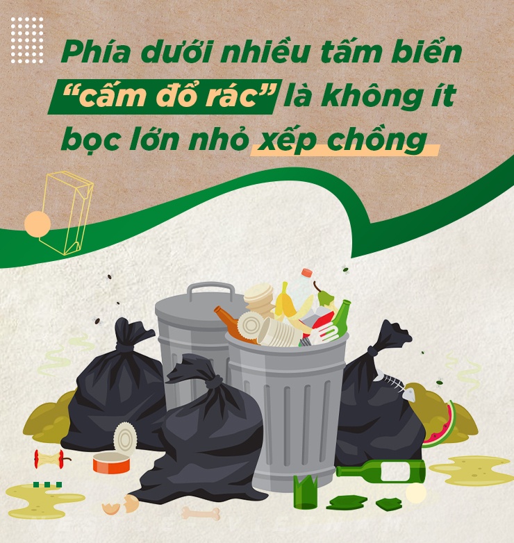 Song nghịch lý rằng phía dưới nhiều tấm biển “cấm đổ rác”, người ta vẫn thấy không ít bọc lớn nhỏ xếp chồng. Nhiều hộ dân sống chung với mùi hôi do “tiện tay” vứt mọi thứ đang cầm xuống dòng kênh ngập ngụa chai nhựa, giấy bóng. Người dọn rác vừa qua, người vứt rác liền đến.