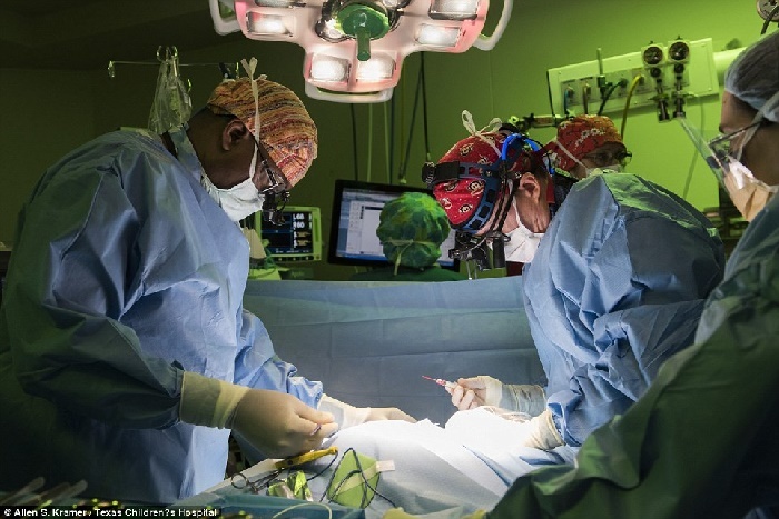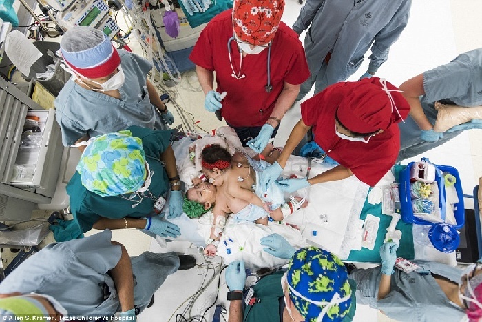 | Các bác sĩ chuẩn bị những bước cuối cùng sau khi hai bé gái được gây mê. |