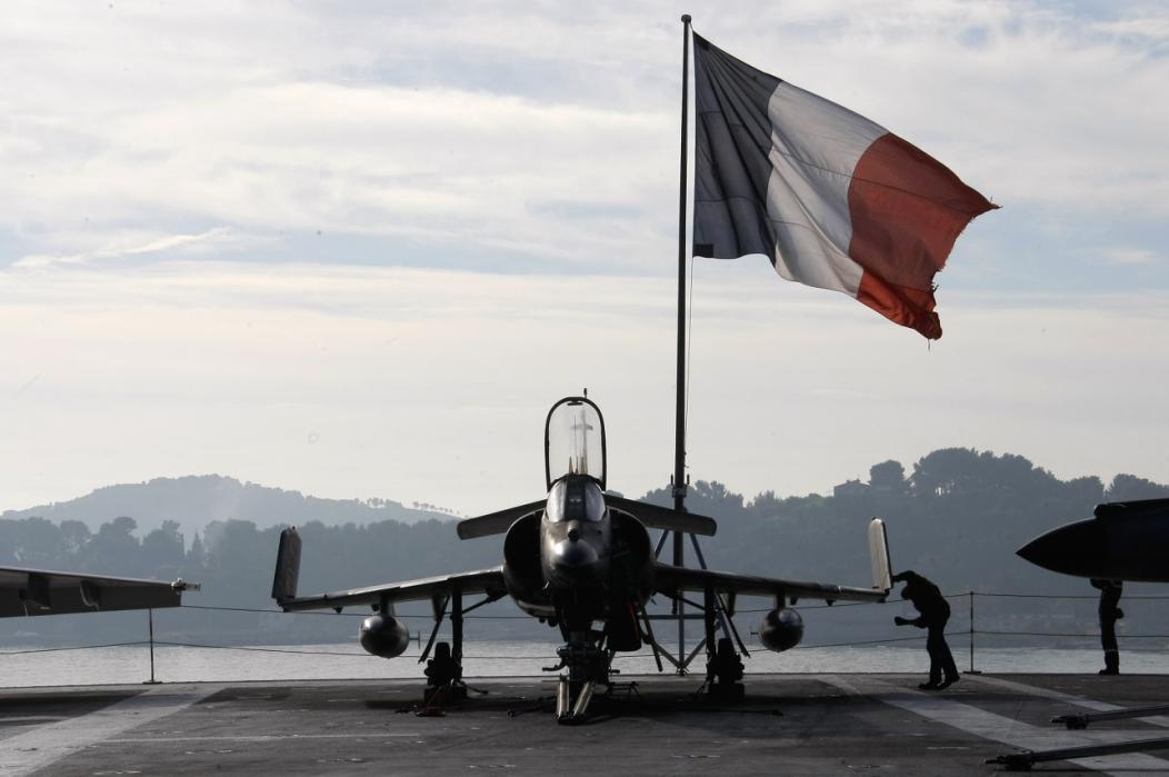 Công việc chuẩn bị cho các máy bay trên tàu Charles De Gaulle khi nó chuẩn bị rời cảng Toulon, Pháp để tới Địa Trung Hải hỗ trợ chiến dịch không kích IS hôm 18/11. Các chiến dịch không kích IS của Pháp được đẩy mạnh sau chuỗi vụ khủng bố đẫm máu ở Paris khiến 130 người thiệt mạng. |