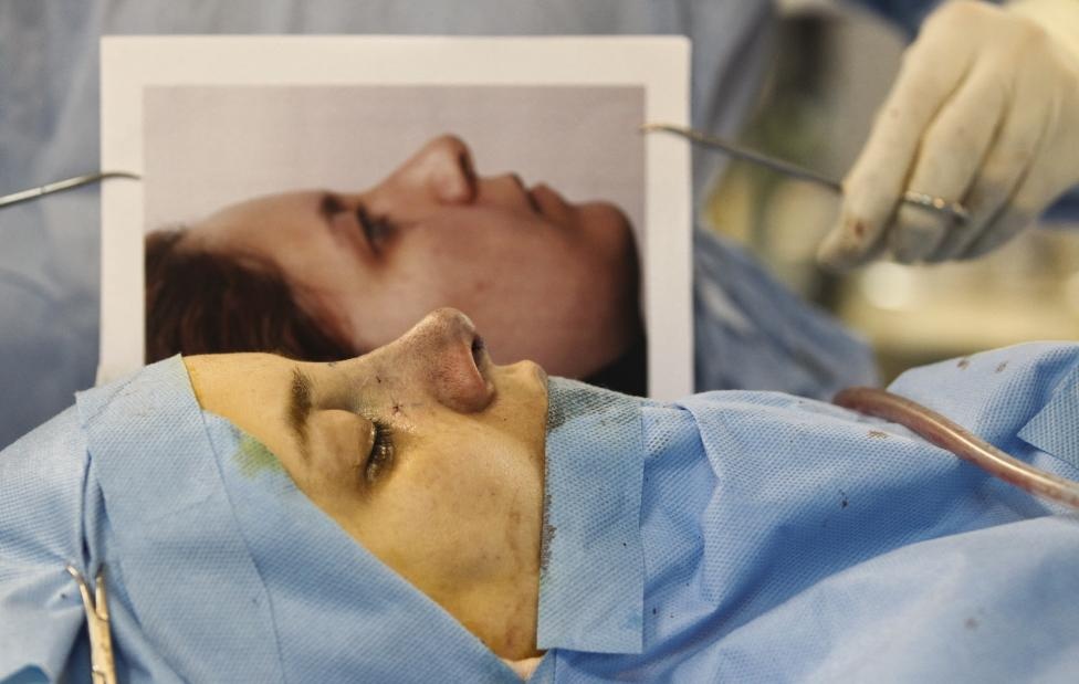 Một ca phẫu thuật thẩm mỹ ở Cộng hoà Hồi giáo Iran hôm 19/8. Bác sĩ tiến hành phẫu thuật để nâng mũi theo yêu cầu của khách hàng.