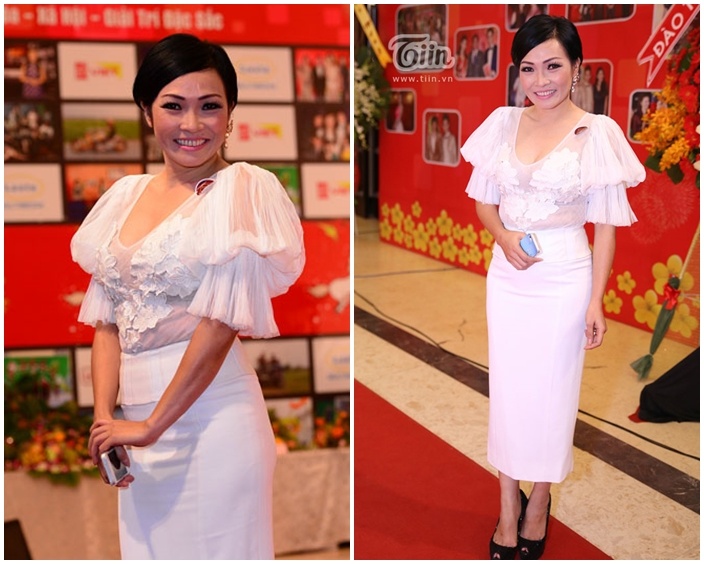 Bà xã ca sĩ Đan Trường góp mặt trong danh sách này với bộ cánh lỗi mốt, bèo nhún tại chân váy xa rời xu hướng chung.