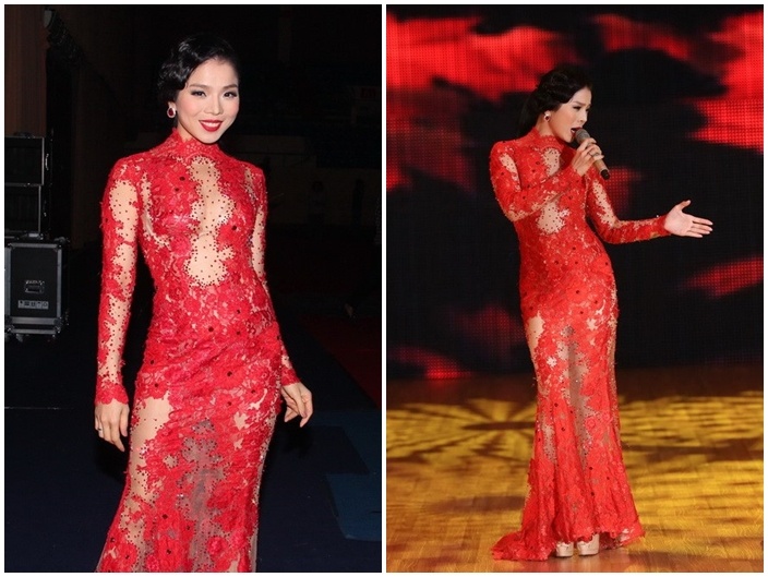 Nữ ca sĩ vốn được đánh giá cao về gu thời trang - Lệ Quyên gây thất vọng với bộ cánh quá nhiều chi tiết rối mắt. Những khoảng hở trên cơ thể như bị loang lổ vì chất liệu ren diêm dúa.