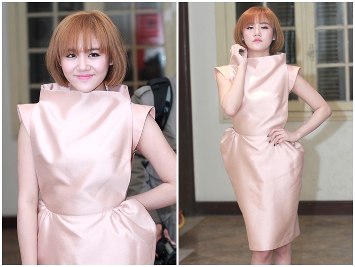 Bộ váy gam màu tối già dặn và có quá nhiều đường cắt rối mắt đưa ca sĩ Nhật Kim Anh có mặt trong danh sách sao xấu tuần qua. Cách chọn trang phục theo cảm hứng riêng mà không theo một trao lưu nhất định khiến hình ảnh của Nhật Kim Anh đang ngày càng đi xuống.