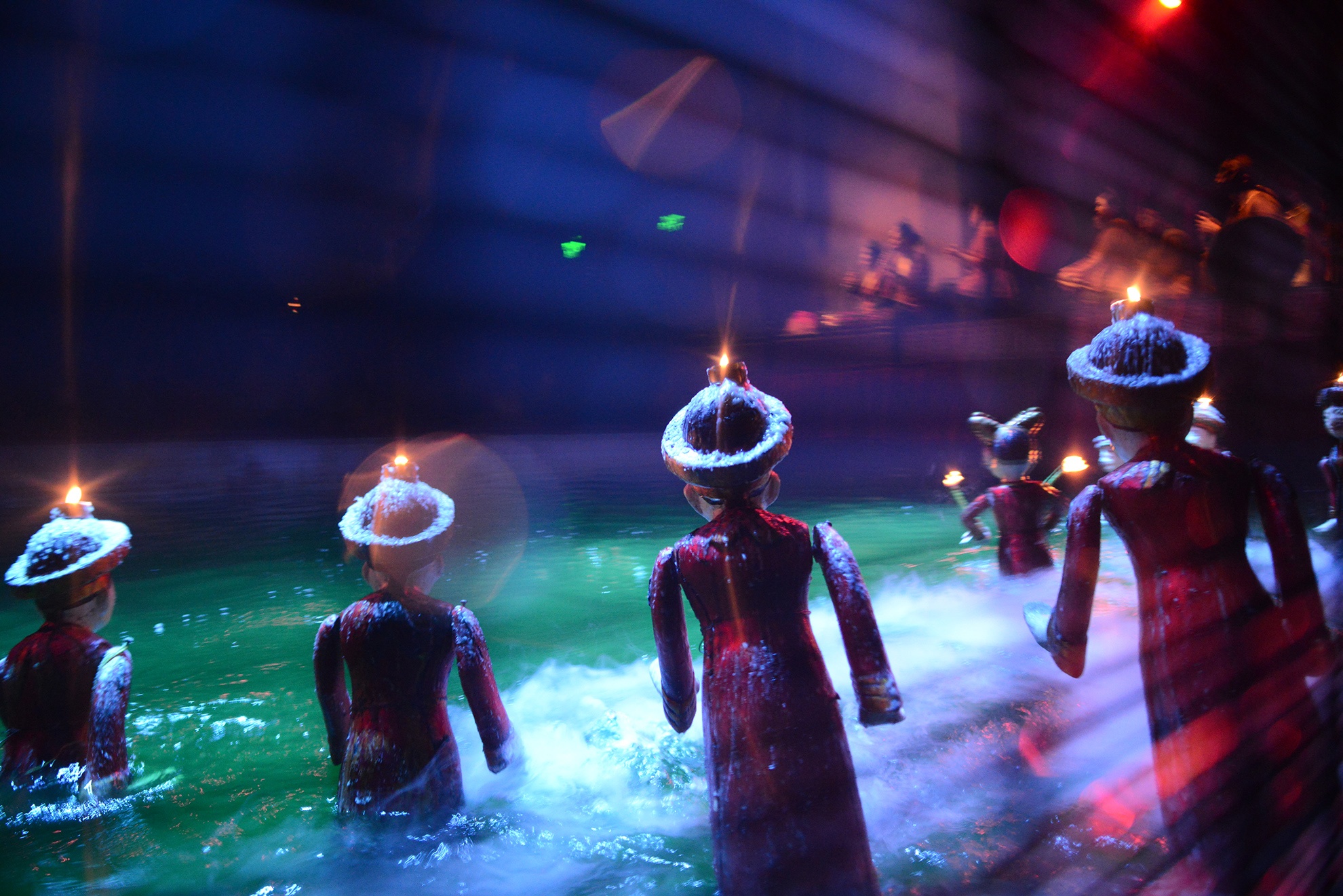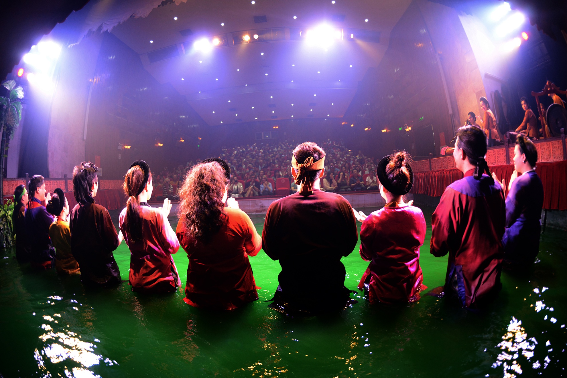 Nhà hát có khoảng 40 diễn viên, chia làm hai đoàn, luân phiên nhau biểu diễn và luyện tập các vở mới để đảm bảo sáng đèn sân khấu quanh năm. Do đặc thù khi biểu diễn phải ngâm nửa cơ thể xuống nước nên các nghệ sĩ luôn mặc quần bảo hộ đeo găng tay cao su giữ nhiệt.