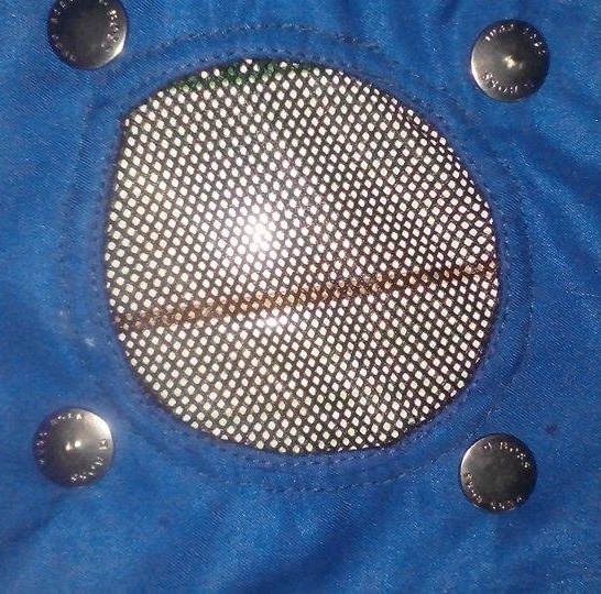 Bước 2: Cắt hình tròn đường kính 8 cm, may vải lưới vào sau đó đóng nút bấm. Nút bấm này dùng để lắp quạt, tháo quạt ra khi giặt áo.