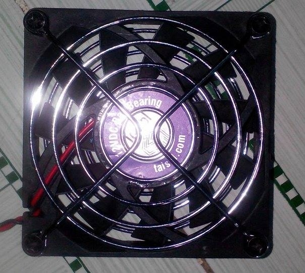 Bước 3: Gắn lưới chắn quạt vào. Gắn nút bấm vào 4 góc và nối dây vào jack DC đực.