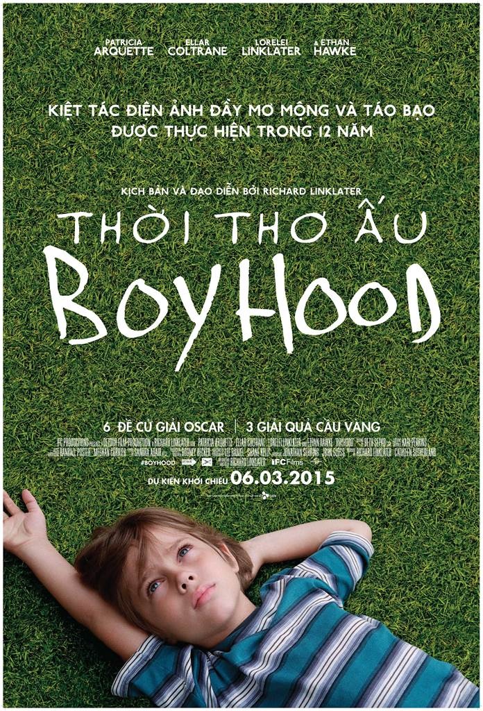 Nằm trong chuỗi các tác phẩm tranh giải Oscar ra rạp Việt năm nay, Boyhood là bộ phim mất 12 năm thực hiện của đạo diễn Richard Linklater. Câu chuyện phim hết sức giản dị nhưng ý nghĩ khi xoay quanh quá trình trưởng thành của cậu bé Mason Jr. bên cạnh hai cha mẹ đã ly hôn. Richard Linklater chủ động thực hiện Boyhood mỗi năm một chút, và dàn diễn viên chính của ông gồm Ellar Coltrane, Patricia Arquette, và Ethan Hawke cứ thế già đi theo thời gian.