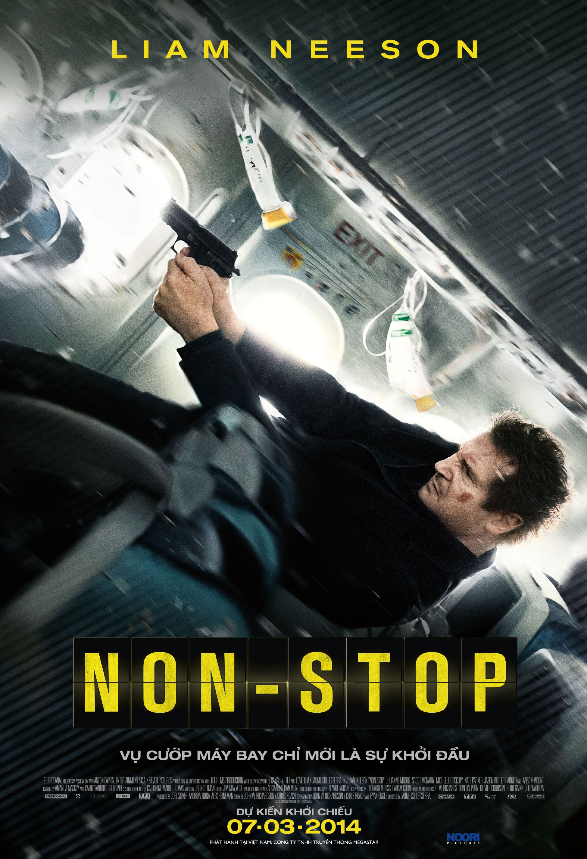 Bộ phim Non-Stop xoay quanh câu chuyện xảy ra trong một chuyến bay xuyên Đại Tây Dương. Nhân viên cảnh sát hàng không liên bang Mỹ Bill Marks (do Liam Neeson đảm nhận) nhận được một loạt tin nhắn đe dọa với ký tự mã hóa, yêu cầu anh phải chỉ dẫn cho chính phủ chuyển 150 triệu USD vào một tài khoản ngân hàng bí mật. Cho đến lúc nhận được tiền, cứ mỗi 20 phút sẽ có một hành khách trên chuyến bay bị giết.