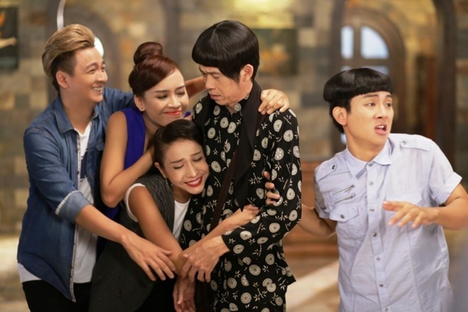 | Dàn diễn viên trẻ trong phim đều là các gương mặt giải trí sáng giá. Tuy nhiên, họ không thể vượt qua cái bóng của Hoài Linh - Việt Hương. Ảnh: Golden Screen |