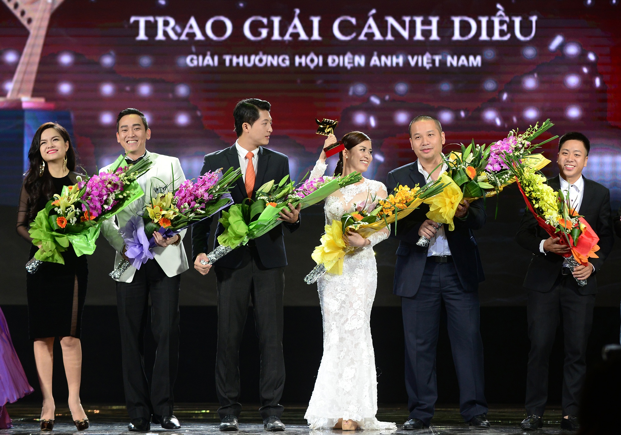 | Đoàn làm phim Thần tượng lên nhận giải Cánh diều vàng cho Phim truyện điện ảnh xuất sắc nhất 2013. |