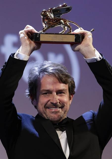 | Đạo diễn Lorenzo Vigas với tượng Sư tử Vàng trên tay. |