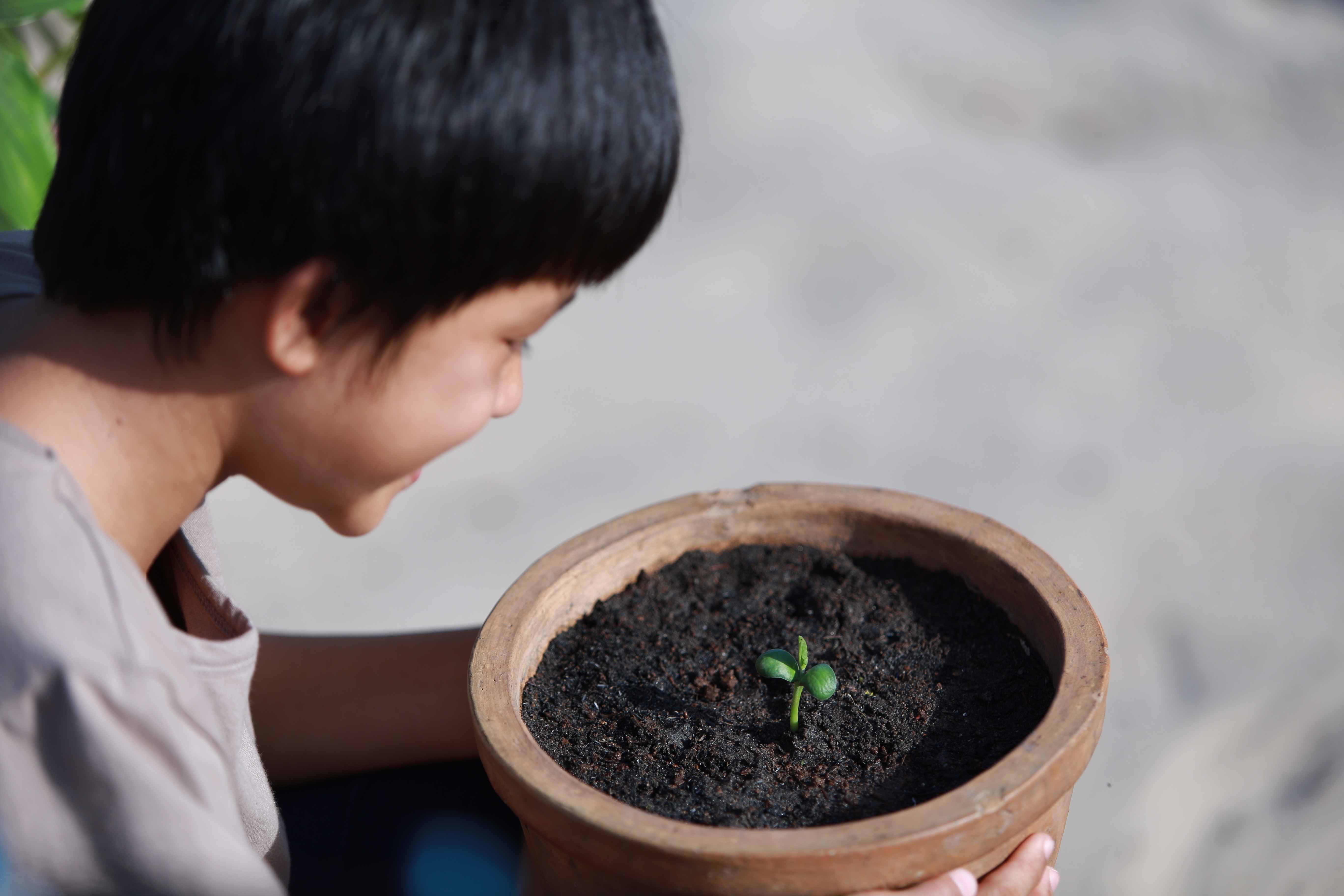 | Cậu bé mong chờ hạt đậu nành nảy mầm, tin rằng cha sẽ trở về. |