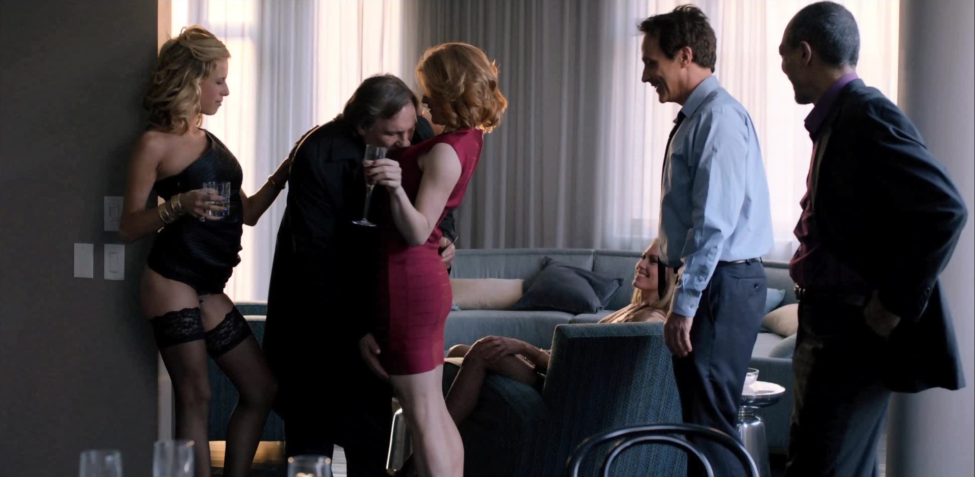 Welcome to New York mở đầu bằng cảnh bữa tiệc tình dục với những cảnh làm tình tập thể táo bạo, ăn kem trên người các gái gọi, trước khi nhân vật George Devereaux có cuộc gặp gỡ định mệnh với một nữ hầu phòng. Trong trường đoạn kéo dài hơn 20 phút này, có lúc Gerard Depardieu hoàn toàn khỏa thân trước ống kính và ve vãn hết người này tới người khác. Khi Devereaux bị bắt tại sân bay và tạm giam rồi khám xét, toàn bộ cơ thể của nam diễn viên người Pháp cũng được phơi bày trên màn ảnh.