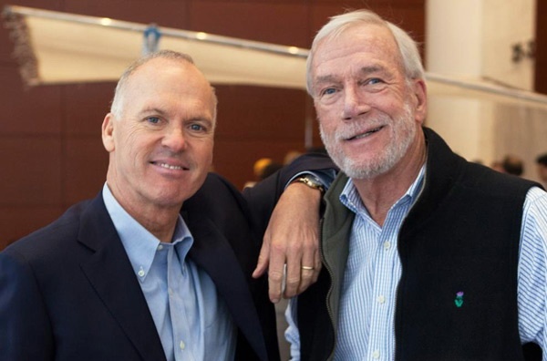 | Michael Keaton bên cạnh Walter Robinson - trưởng nhóm phóng viên Spotlight ở ngoài đời thực. Ảnh: HistoryvsHollywood |