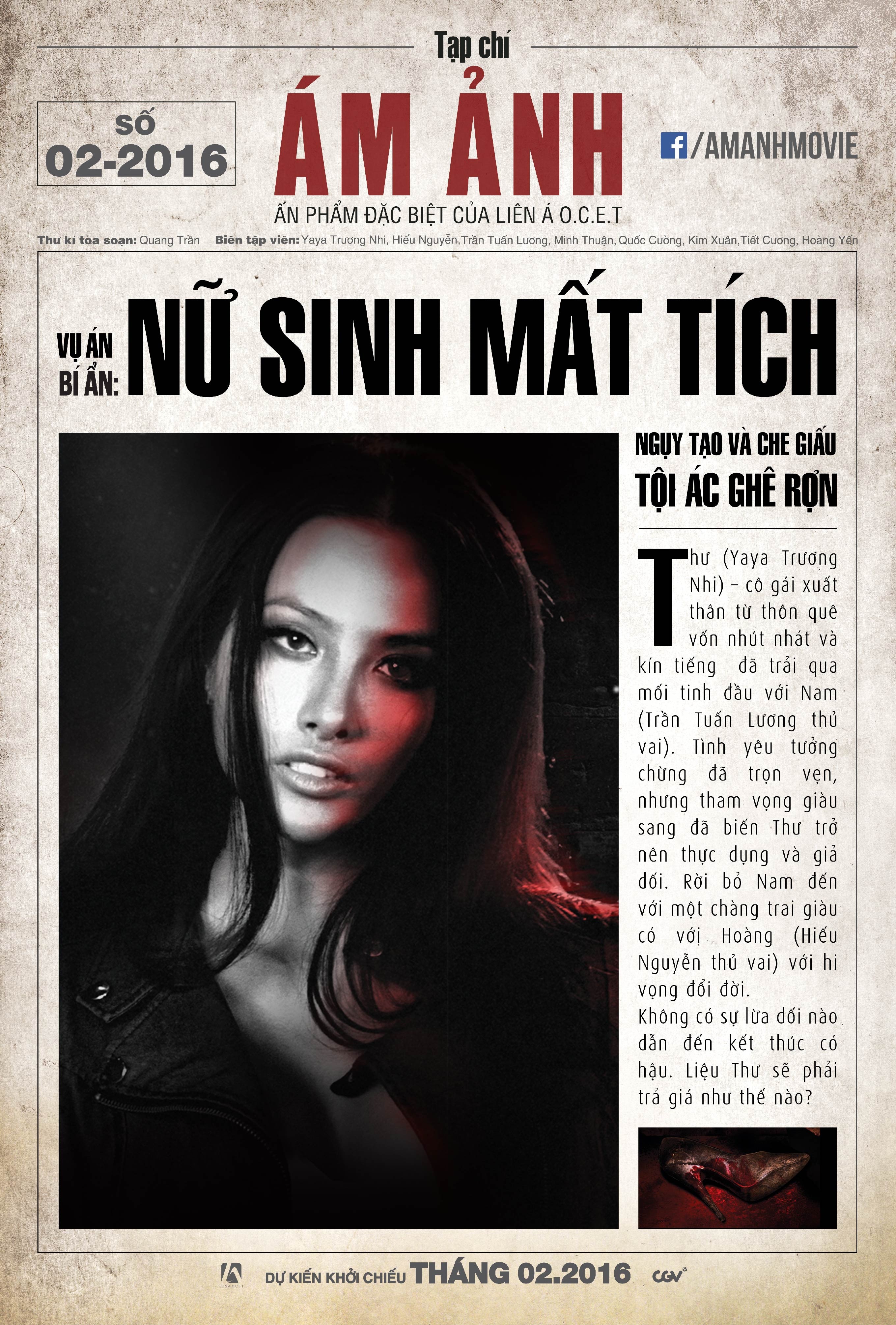 Sau cùng, Ám ảnh là cái tên có mặt muộn trong cuộc đua phòng vé ngày Tết 2016. Tác phẩm kinh dị Việt có sự tham gia của Yaya Trương Nhi, từng lên kế hoạch ra rạp trong mùa hè 2015, nhưng sau đó buộc phải chỉnh sửa rất nhiều theo ý kiến của Cục Điện ảnh và cho tới gần đây mới thực sự hoàn tất.