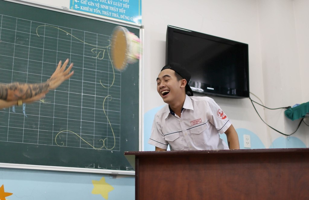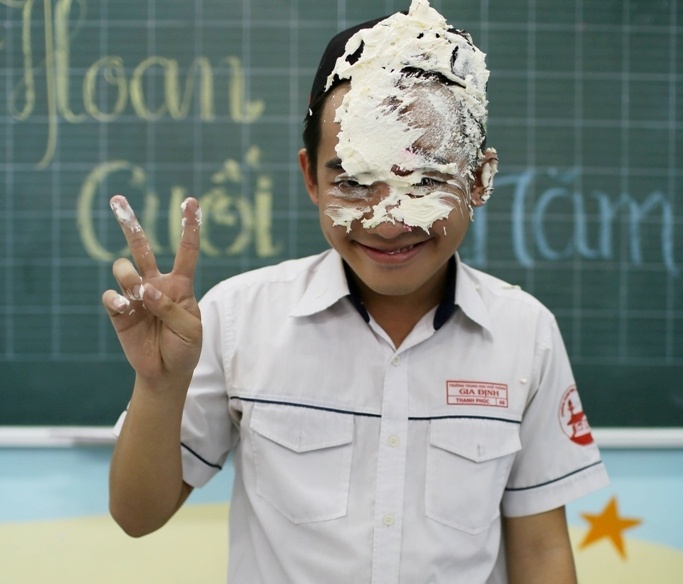 | Để hoàn thành vai diễn, Phở Đặc Biệt bị ném nguyên ổ bánh kem vào mặt. |