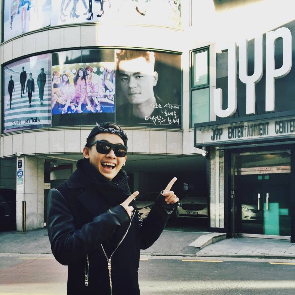 | Hạnh phúc của anh chàng trước trụ sở JYP. |