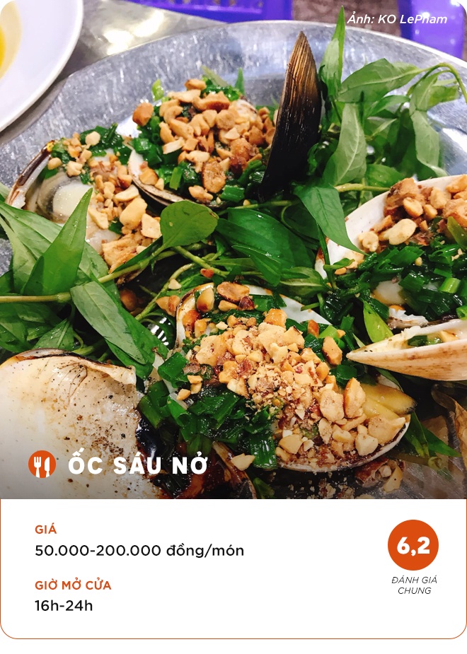 Dân Bích Chương: "Mình ăn ở quán Sáu Nở khá nhiều, lần này đi 3 người, hết 693.000 đồng, khá cao nhưng món ở đây ổn. Ốc, sò, hải sản tươi. Bạn nên thử món sốt trứng muối, nghêu hấp Thái hay ốc len xào dừa. Nhân viên hơi lơ là. Giá vé gửi xe kế bên 5.000 đồng/chiếc".