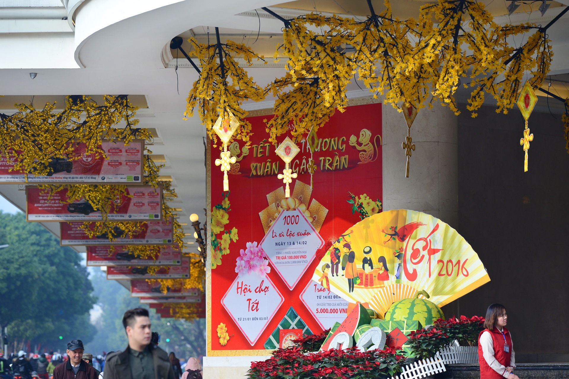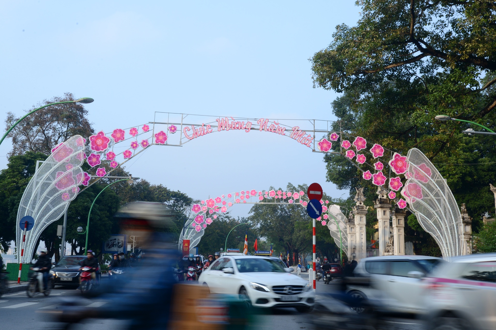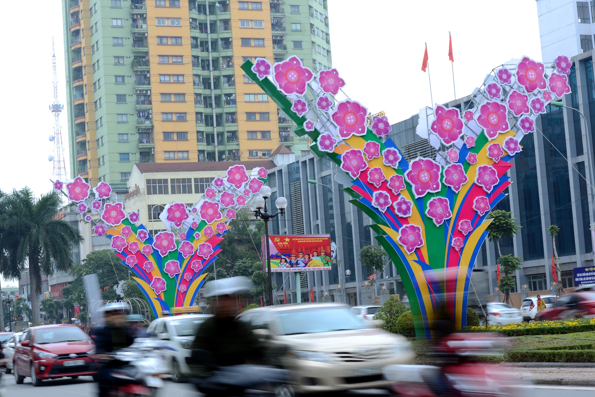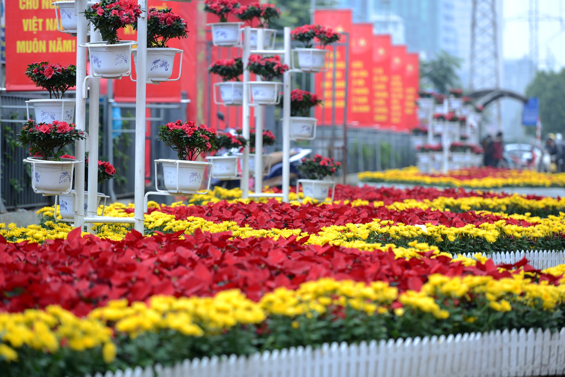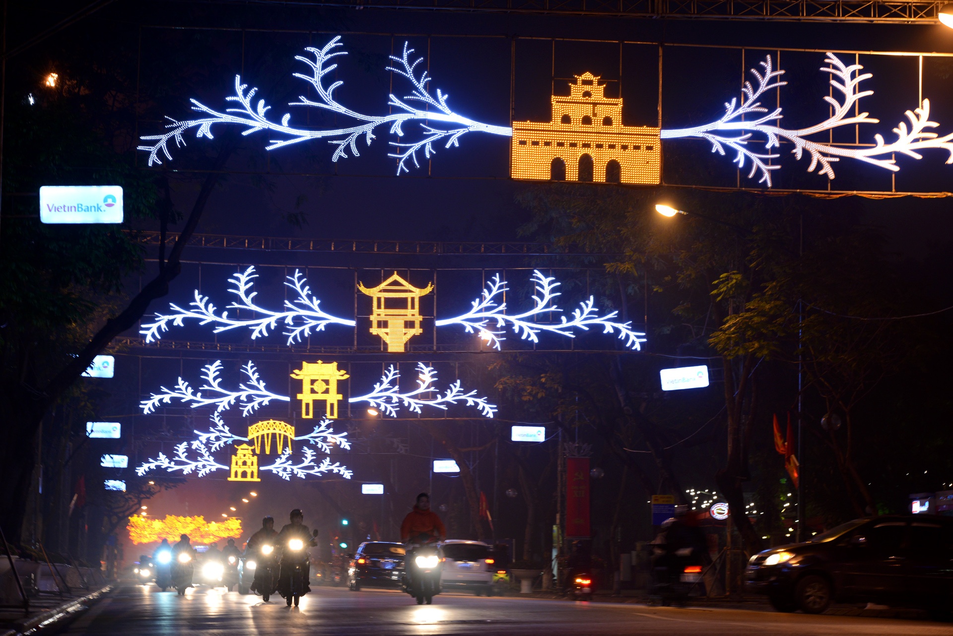 Trước thời điểm chuyển giao sang năm mới Bính Thân hai tuần, khắp các tuyến đường phố ở thủ đô đang lung linh, rực rỡ với các tiểu cảnh, cờ hoa trang trí.