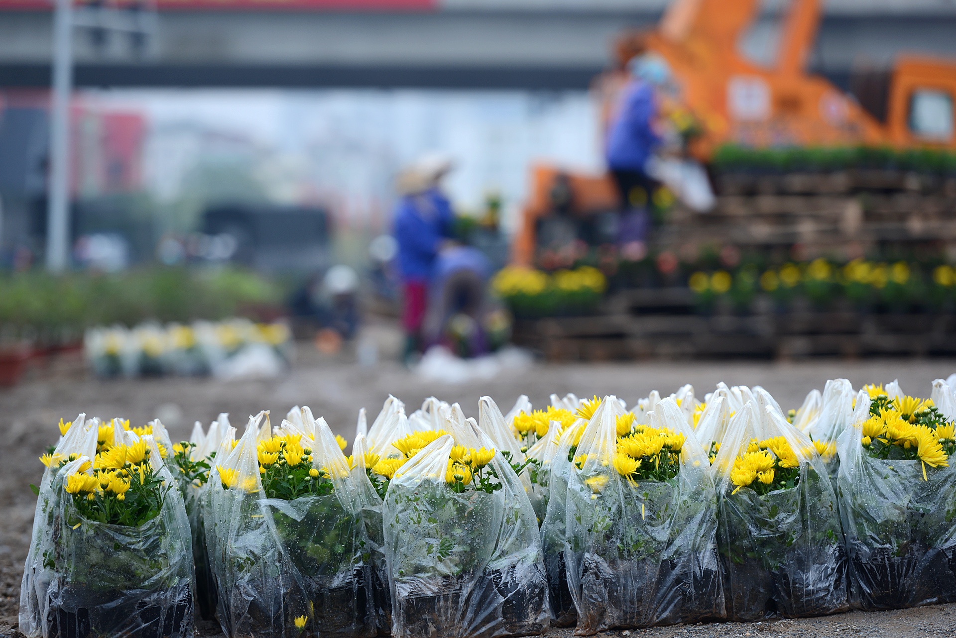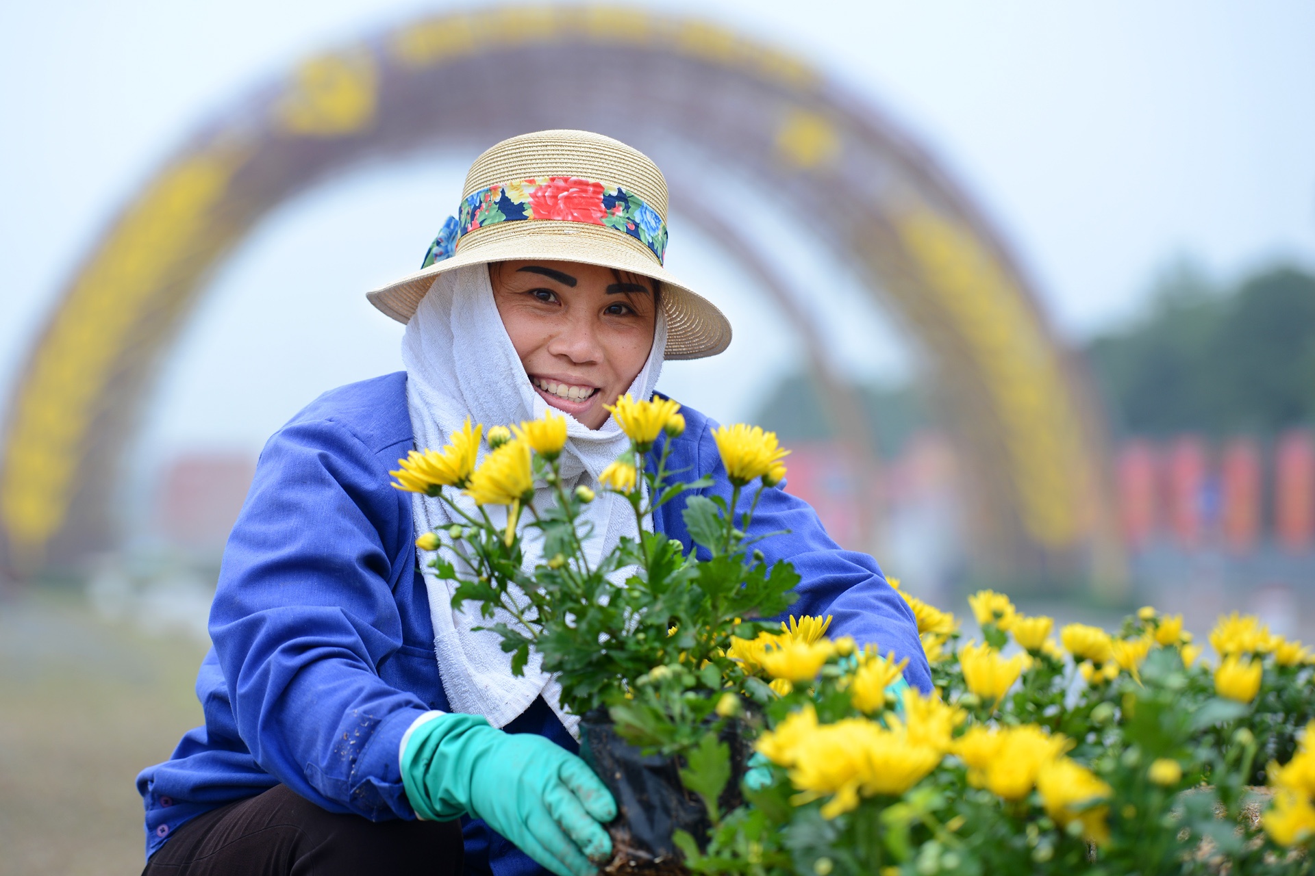| "Các chị em công nhân bận rộn hoàn tất các công đoạn kể từ nay đến cận Tết để cắm và trang trí hoa. Chị Nguyễn Thị Hương, nhân viên công ty kiến trúc môi trường An Phú chia sẻ: "Hà Nội mình năm nay đẹp lắm". |