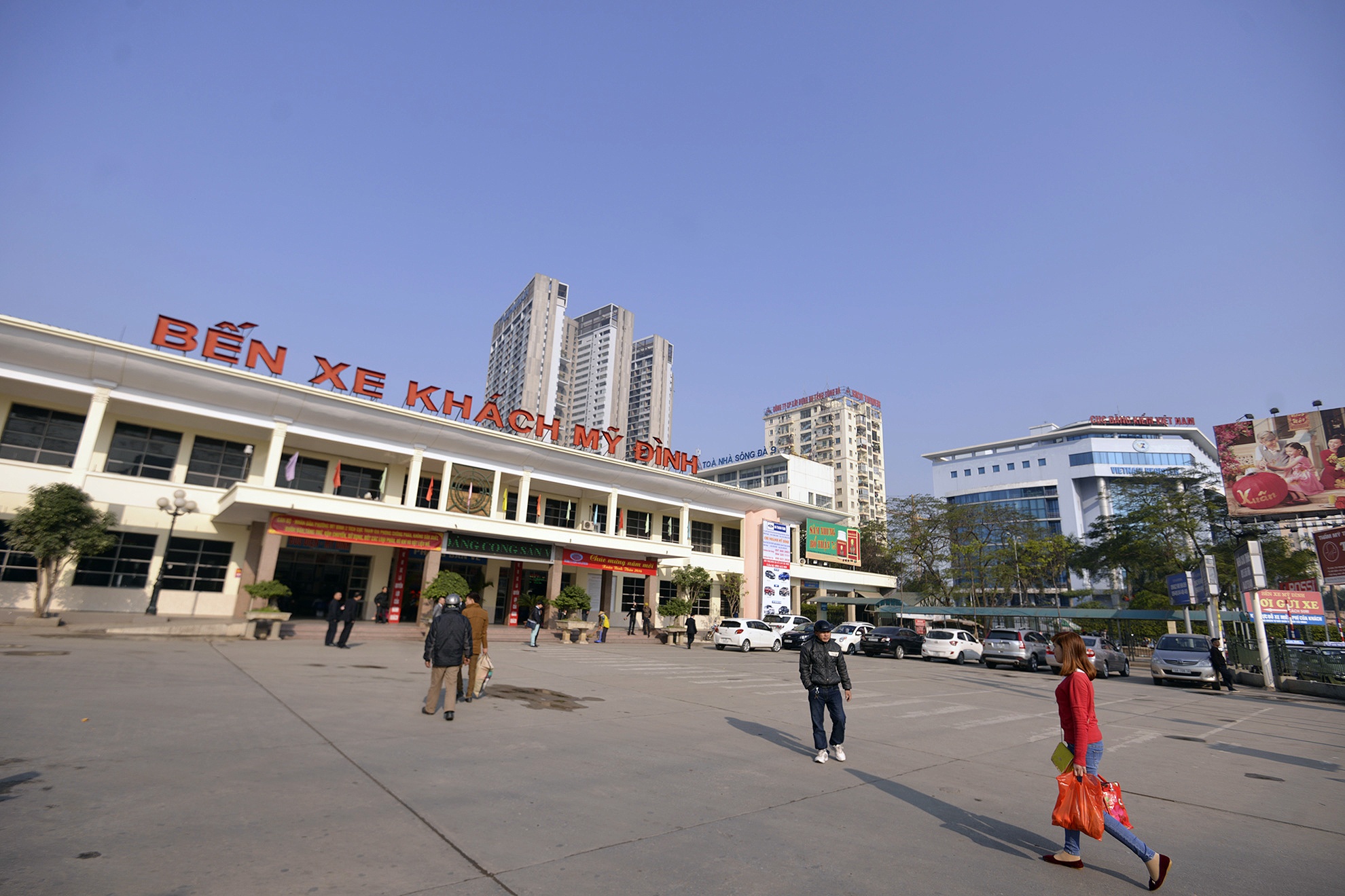 | Bến xe Mỹ Đình trước đó một ngày đông nghịt, hôm nay trống vắng cả sân trước lẫn sân sau. Một trong những hành khách cuối cùng thảnh thơi tìm lối lên ôtô về quê muộn. |