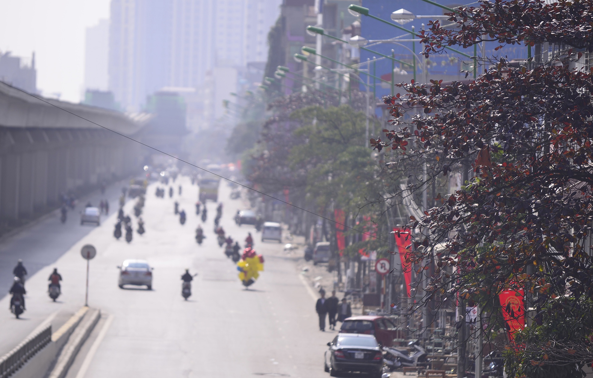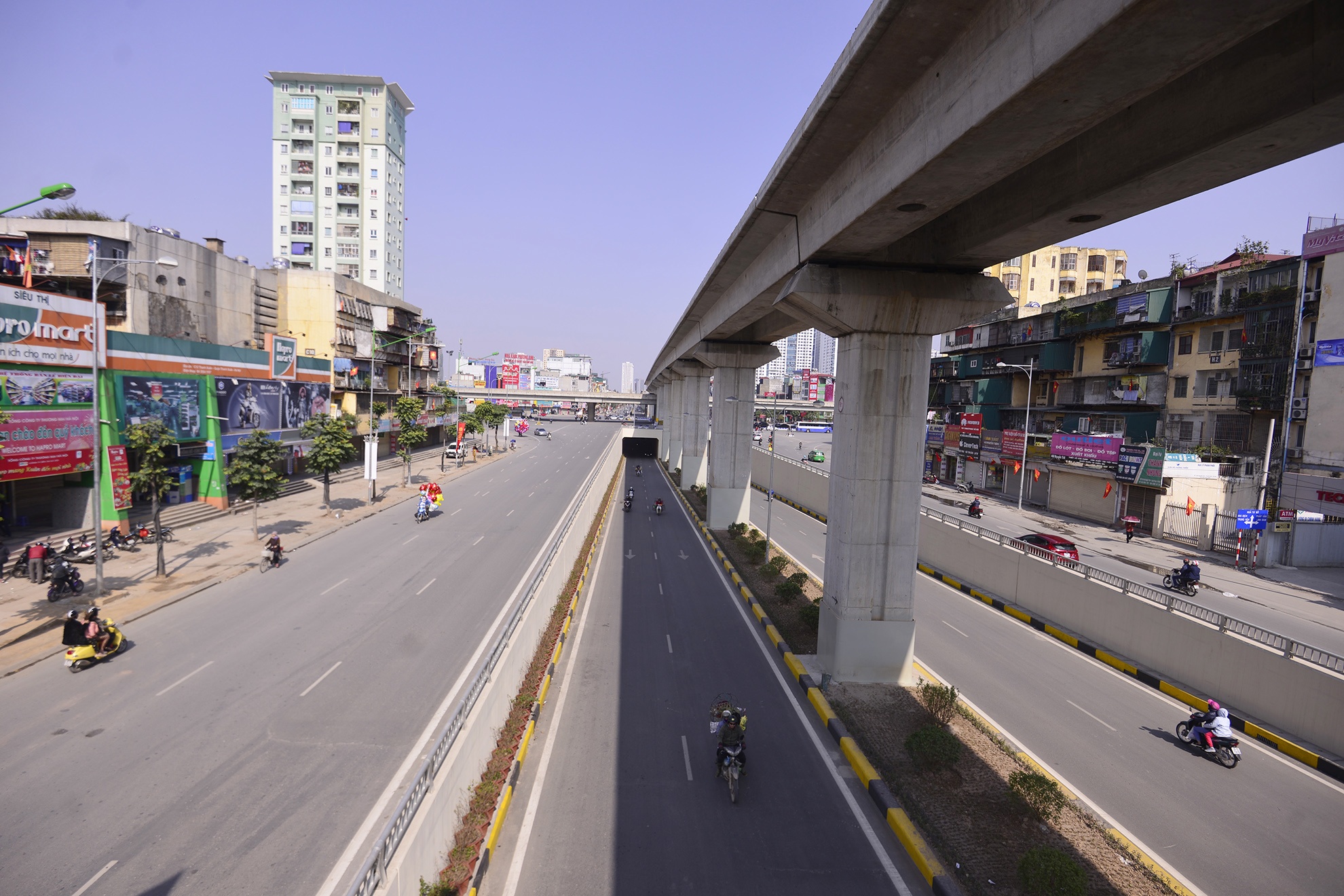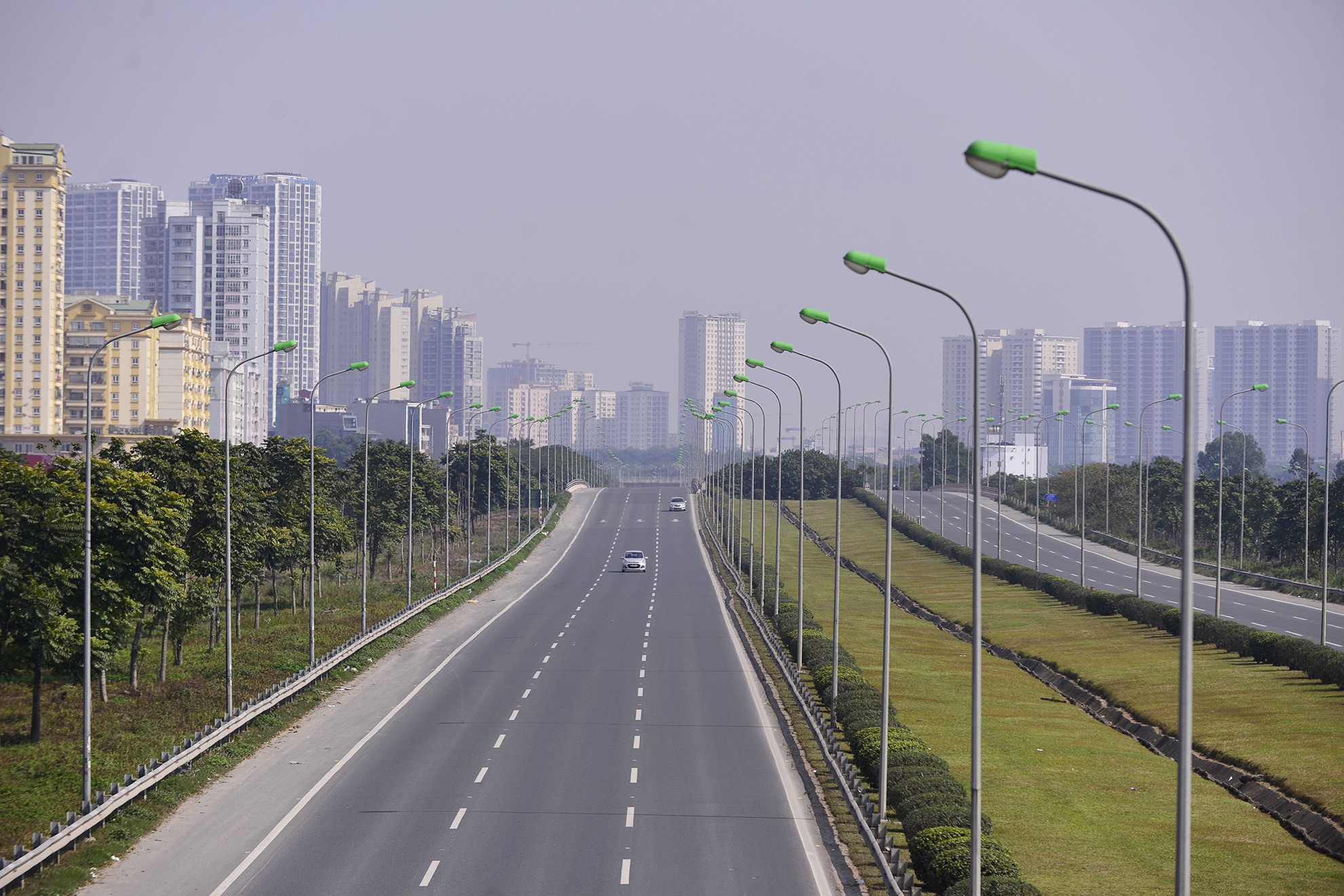 | Đại lộ Thăng Long gần như không có bóng xe cộ. |