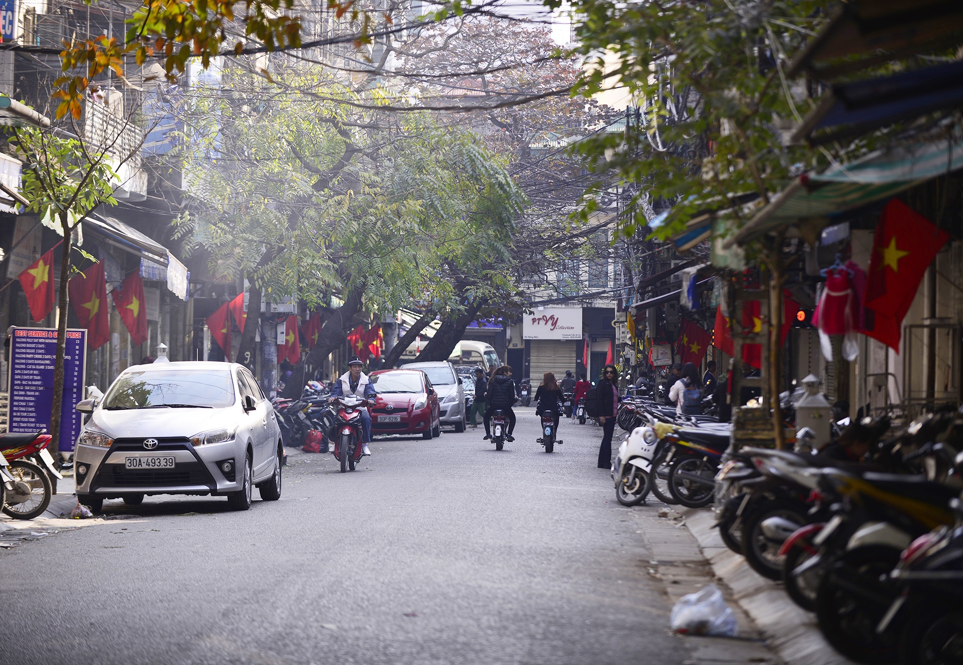| Nhiều tuyến phố cổ treo cờ mừng Đảng, mừng xuân. |