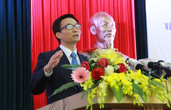 | Phó thủ tướng Vũ Đức Đam phát biểu trong hội nghị sáng 13/2. |