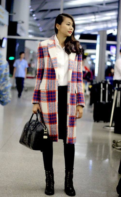 | Và không kém phần dịu dàng khi mix với áo khoác dạ kẻ sọc. |