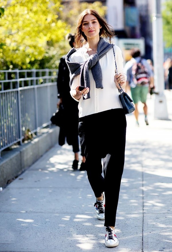 Một sự kết hợp độc đáo giữa phong cách công sở chỉn chu và chất sporty của giày thể thao. Hai item có nhiệm vụ tiết chế lẫn nhau mang đến cho nàng công sở vẻ ngoài cá tính miễn bàn.