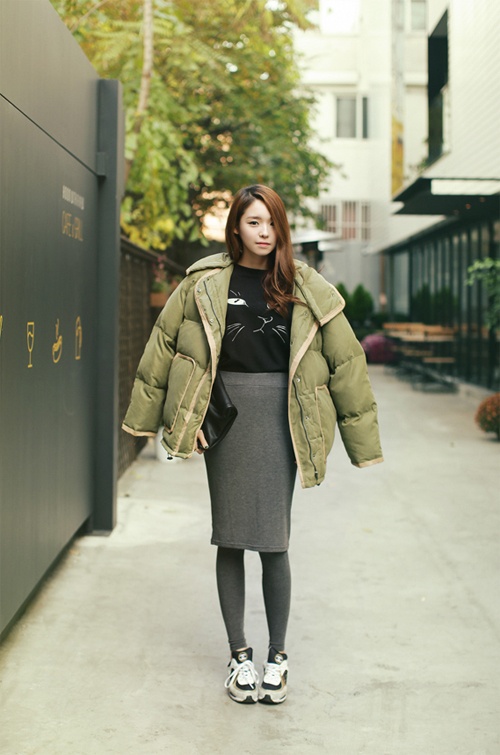 | Một chiếc chân váy dáng dài cùng đôi giày bánh mì to bản sẽ giúp bạn có style mới lạ khi đến công sở. |