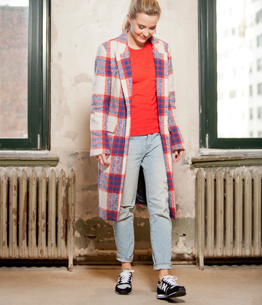 Một cách mix đồ cổ điển với giày thể thao là kết hợp quần jeans dáng ôm. Với chiếc áo thanh lịch cộng thêm blazer nổi bật cùng tông giày, bạn đã có bộ cánh hoàn hảo để đi làm, thậm chí có thể đi chơi với bạn bè.