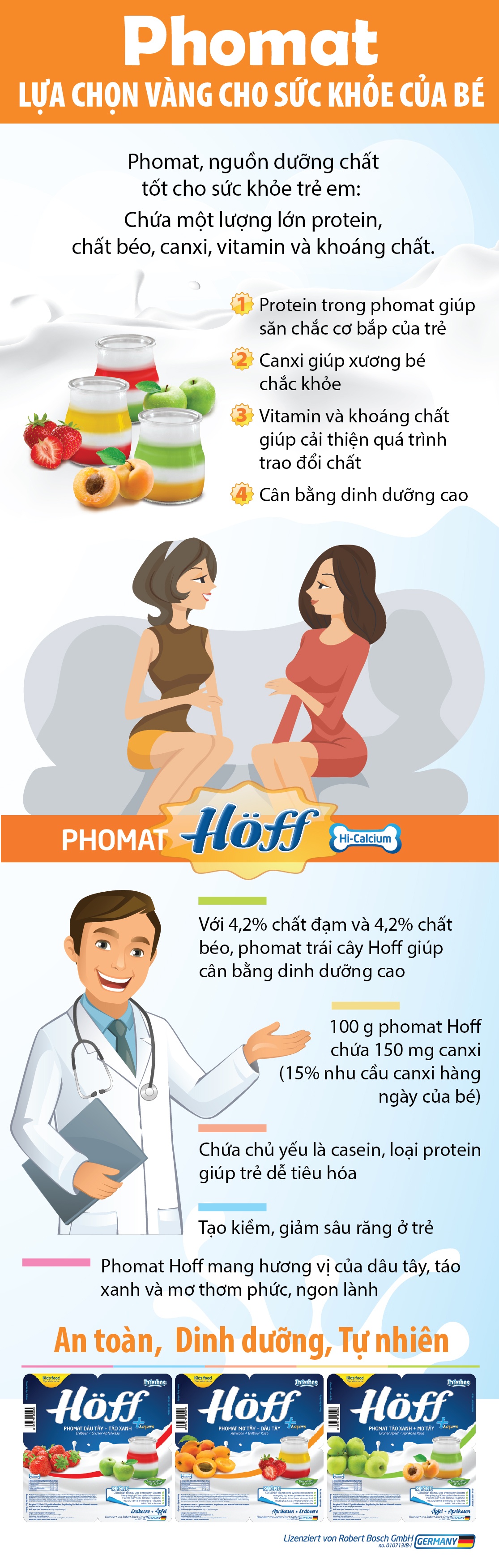 Làm từ sữa bò tươi, phomat được sử dụng như thực phẩm bổ sung giúp trẻ phát triển toàn diện. Theo đó, protein giúp săn chắc cơ bắp, canxi giúp bộ xương được khỏe mạnh, vitamin và khoáng chất cải thiện quá trình trao đổi chất. Đây cũng là lý do phomat được nhiều bà mẹ lựa chọn cho bữa ăn của con hàng ngày.
